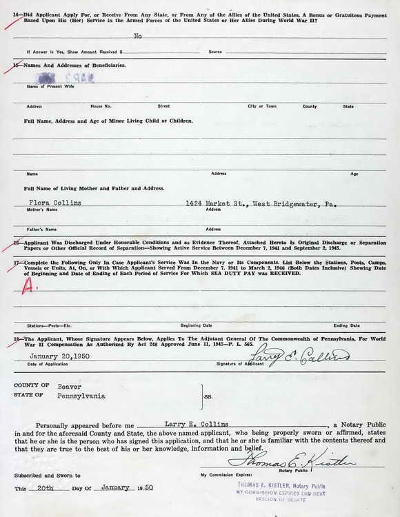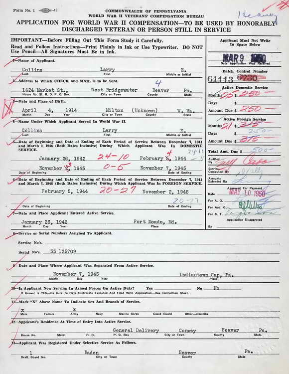 Pennsylvania Veterans Bonus application submitted