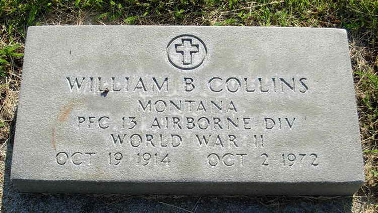 marker for William B. Collins in Holy Cross Cemetery, Butte (Silver Bow