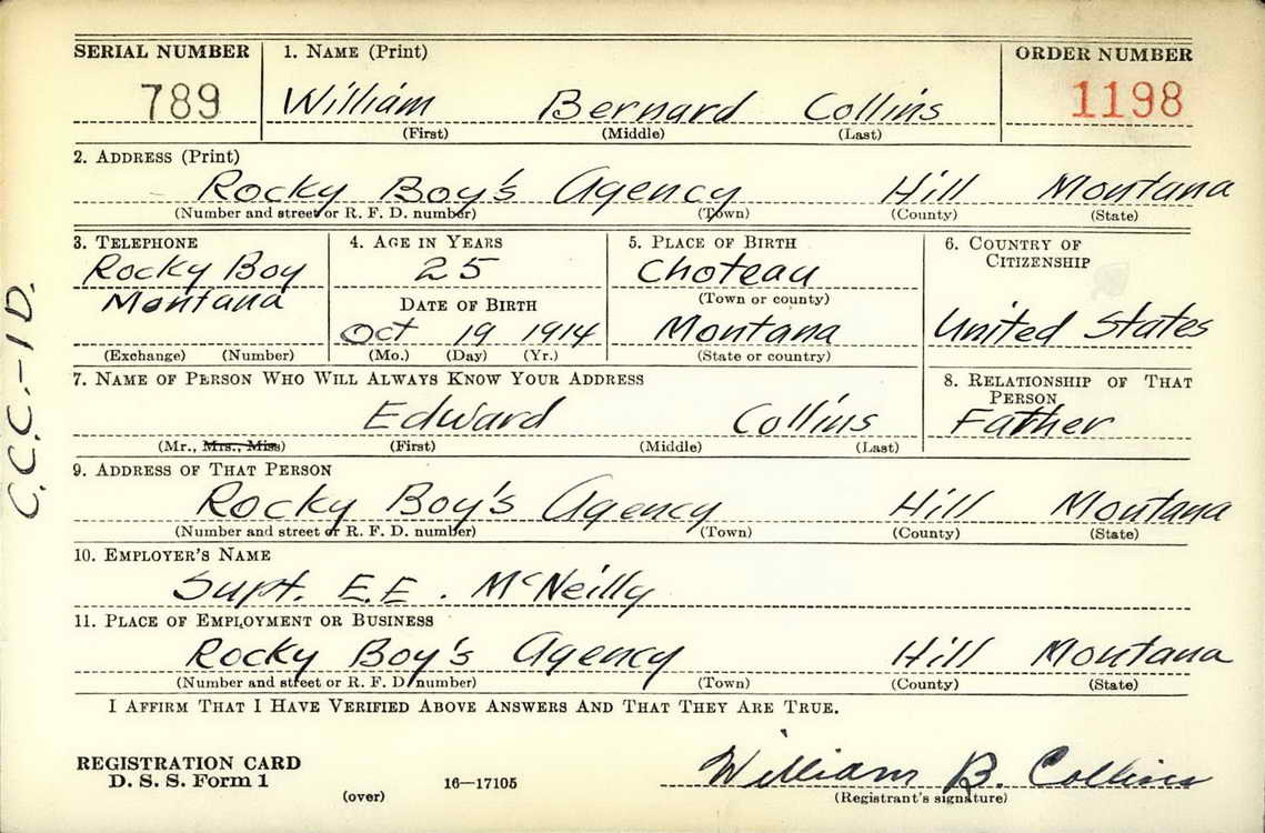 Born in Choteau Oct. 19, 1914, Mr. Collins attended Browning schools and has lived in this area most of his life. He served