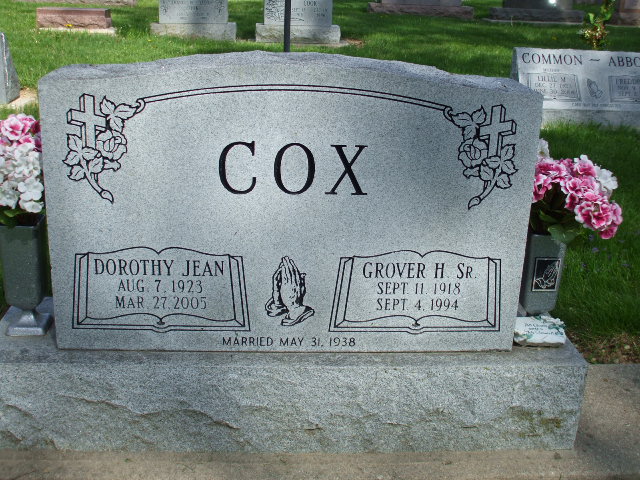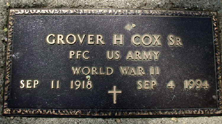 whom he married May 31, 1938; one daughter, Mary Ruth Ellison of Anderson; four sons, Grover H. Cox Jr. of Anderson and Timothy James Cox, David D. Cox and Samuel Stephen Cox, all of Alexandria; three