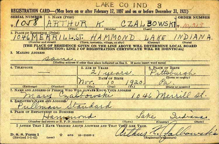 Mr. Czalbowski was employed as a machinist for East Chicago Machine and Tool and was a veteran of World War II,