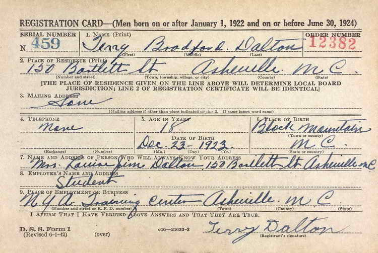 December 23, 1923 in Black Mountain, North Carolina to George Marion