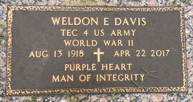 Weldon Edward Davis, 98, went to be with his savior April 22, 2017 in Oklahoma City.