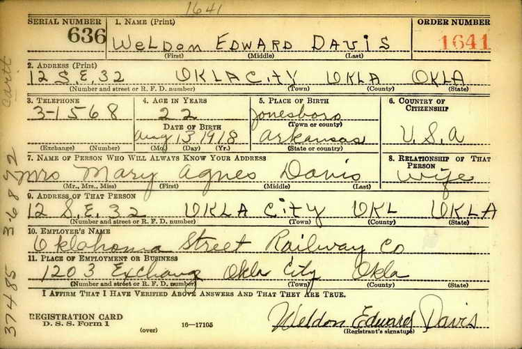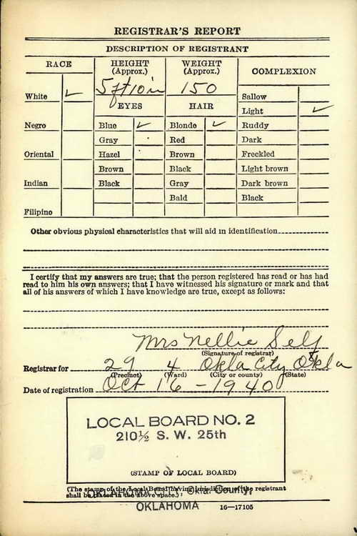 draft in Oklahoma City, OK on 16 October 1940. He had married Mary