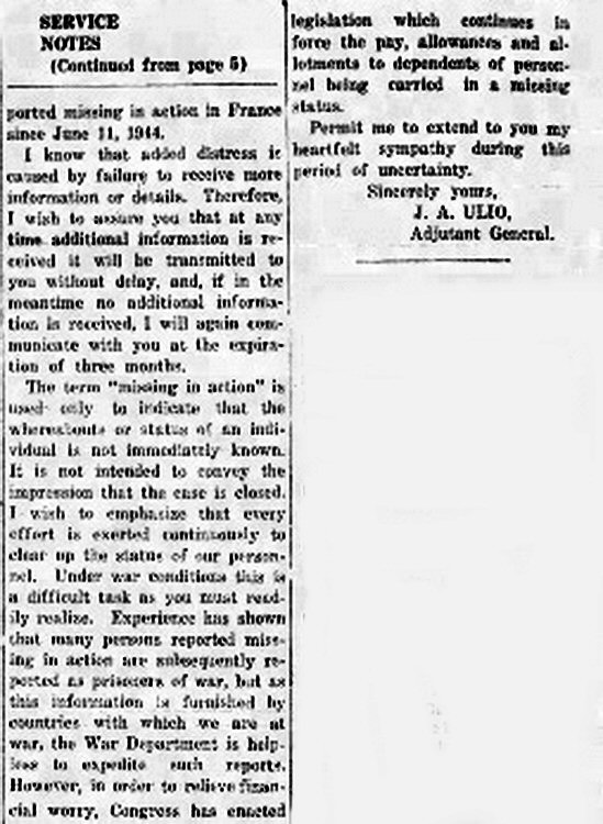 reported missing in action as of 11 June 44.
