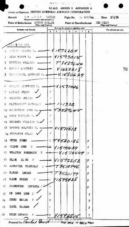 On 17 August 1956, he departed New York, NY to London, England on