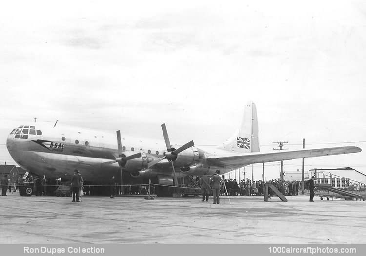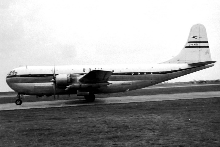 G-AKGI (to 159796). The 377 was a long-range airliner developed from the C-97 Stratofreighter military transport, itself a derivative of the B-29 Superfortress.
