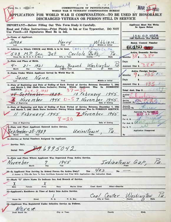 submitted this Pennsylvania WWII Veterans Bonus application