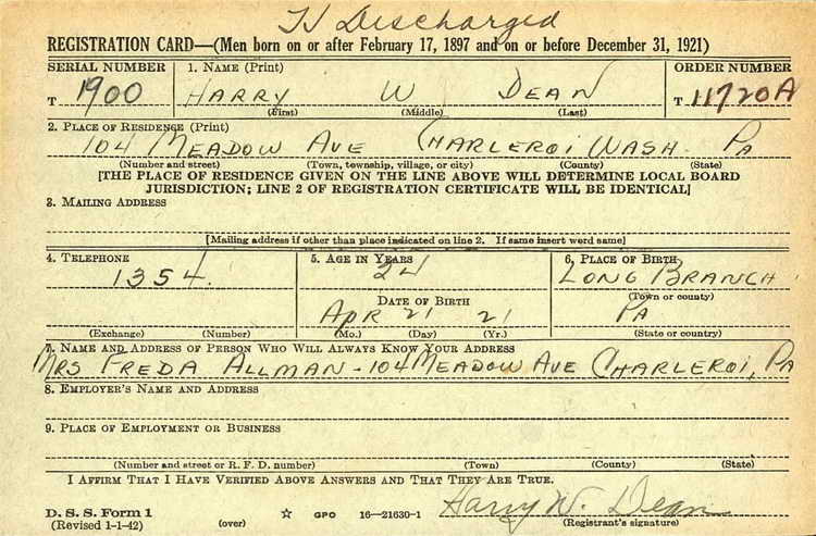 Although Harry W. Dean stated that he never registered for the draft