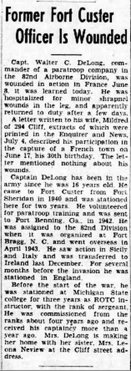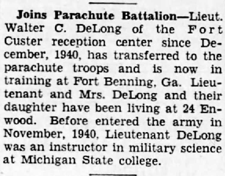 Parachute Battalion Lieut. Walter C. DeLong of the Fort Custer