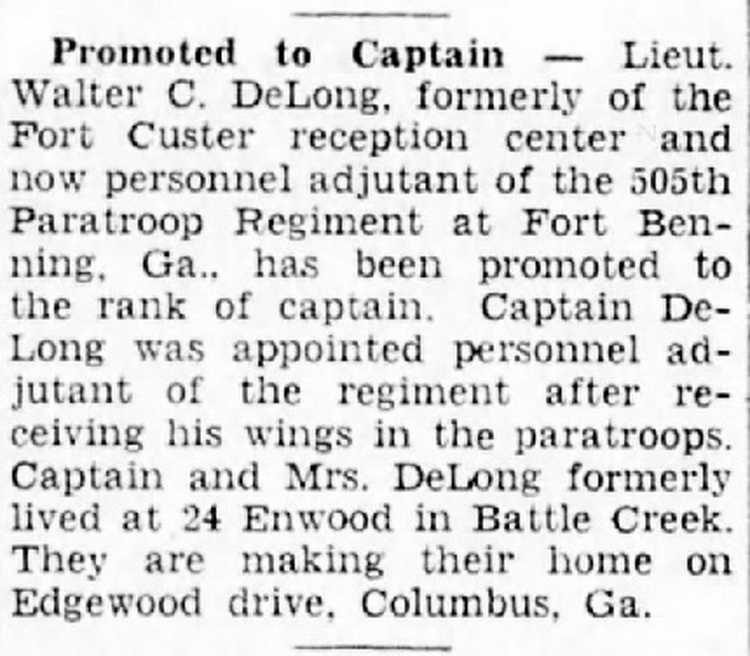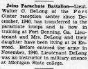 receiving his wings in the paratroops. Captain and Mrs. DeLong formerly