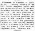 Captain DeLong was appointed personnel adjutant of the regiment after