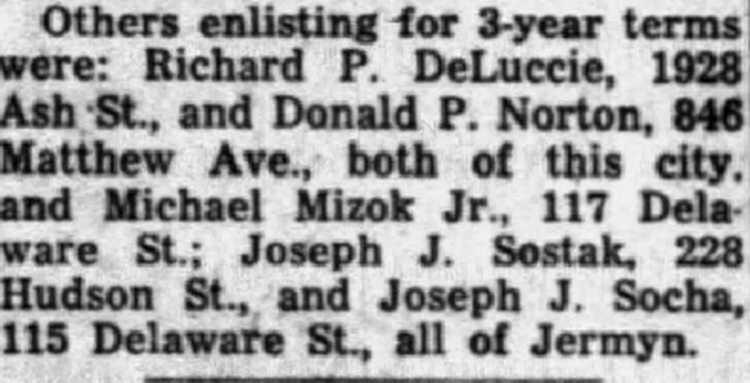 Sostak. 228 Hudson St, and Joseph J. Socha. 115 Delaware St, all of