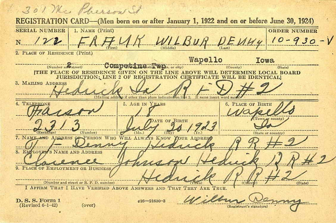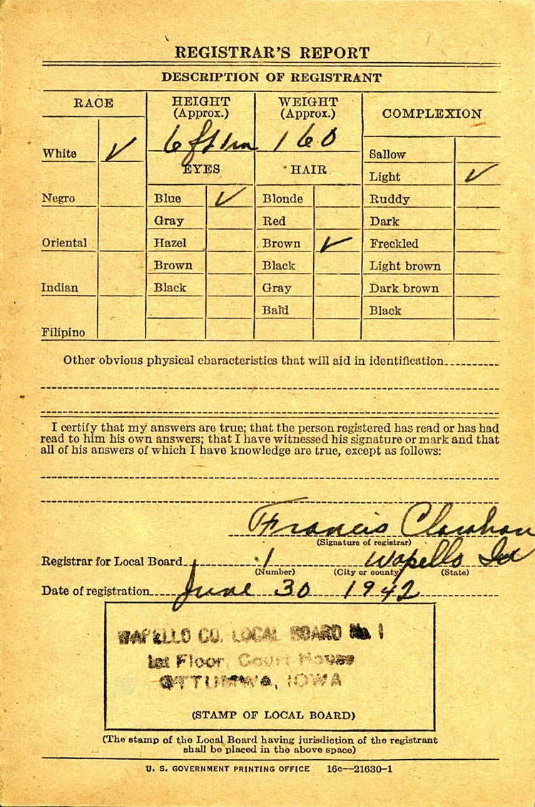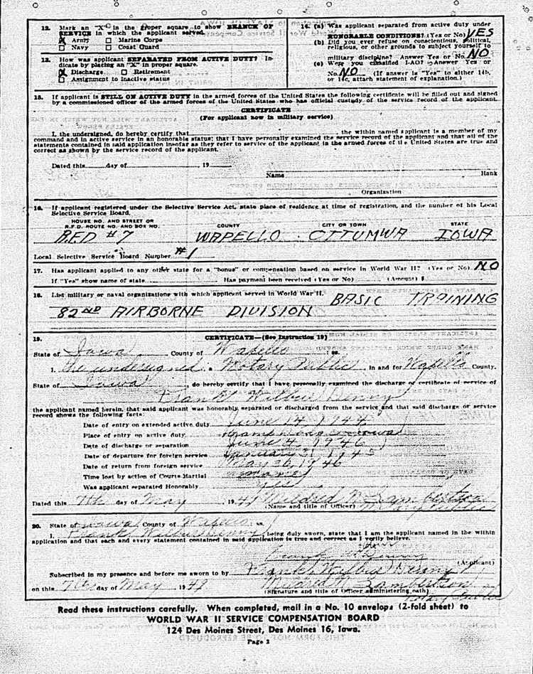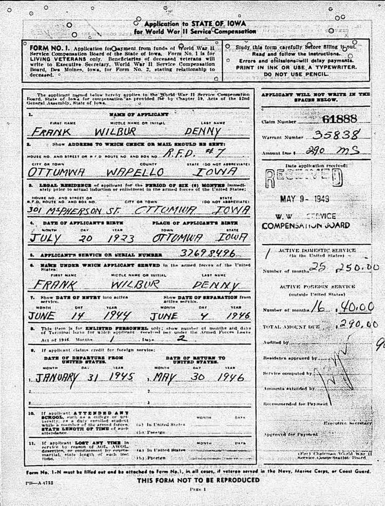 Frank submitted this application for the Iowa WWII Veterans Bonus
