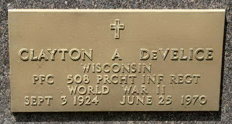 Grave marker for Clayton A. DeVelice in