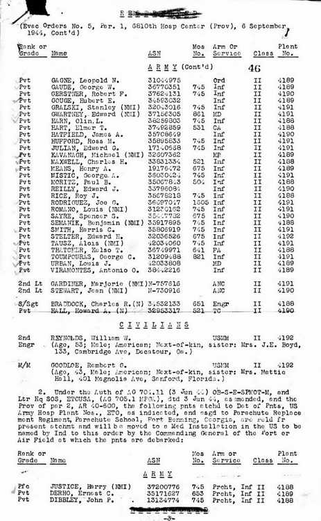 the Parachute School, Fort Benning, GA to Company D, 508th PIR