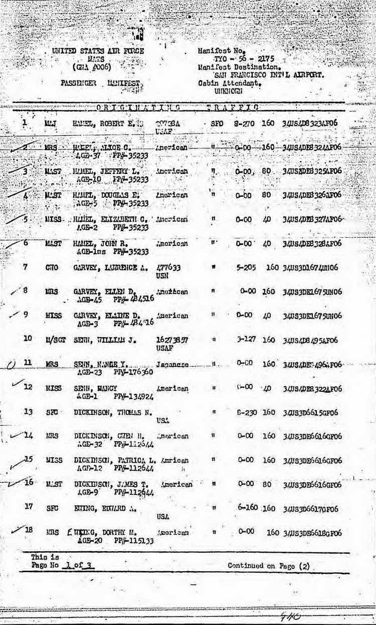 Chickamauga, Japan to Camp Campbell, KY via Travis AFB, CA, with wife
