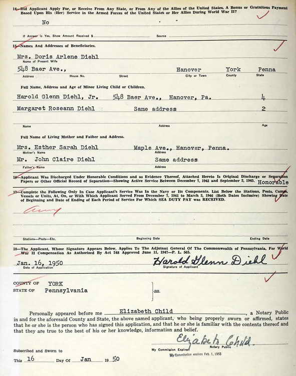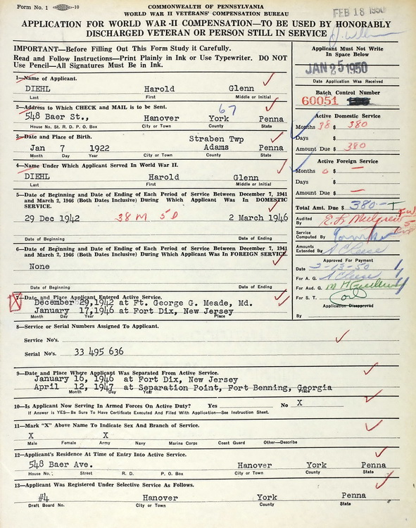 the Pennsylvania WWII Veterans Bonus. He was credited with 38