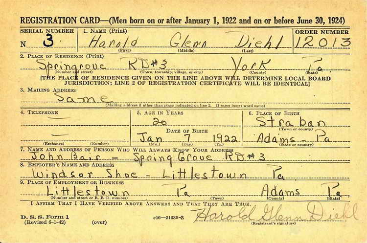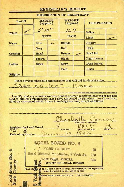 Harold registered for the draft in Hanover, Pa on 30