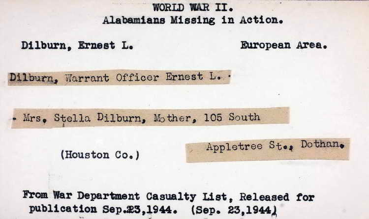 Warrant Officer Ernest Lee Dilburn, who has been reported