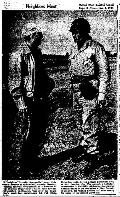 Lt. Col Clyde Dillender, right, during a mass parachute drop at Fort