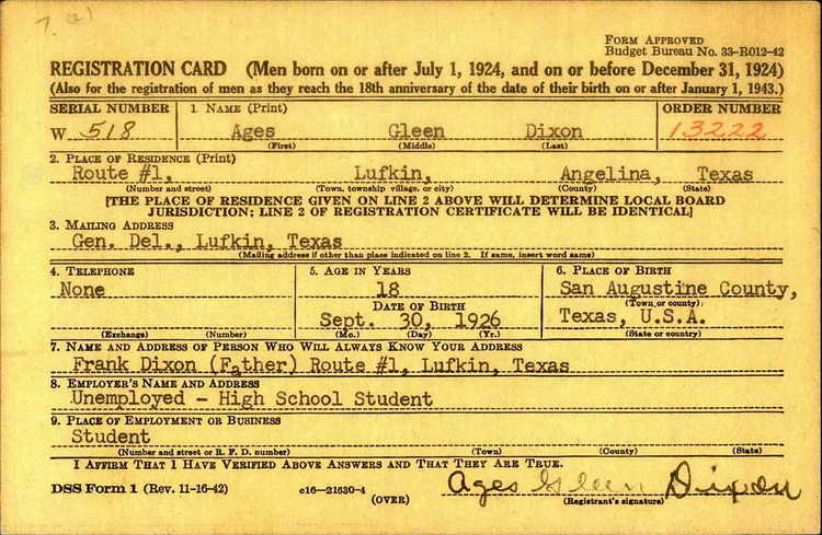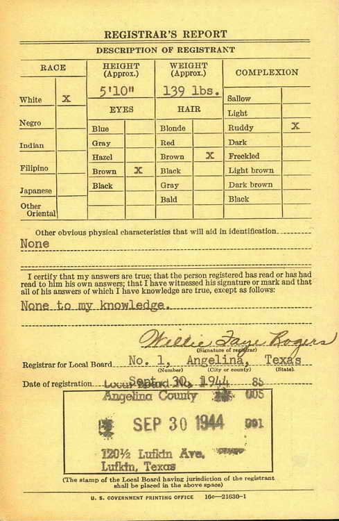 enlisted in the Army at Camp Wolters, TX on 30 September 1944, the same