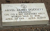 Grave marker for Arvel J. Doggett in the