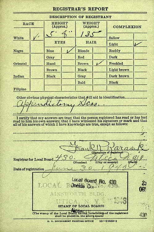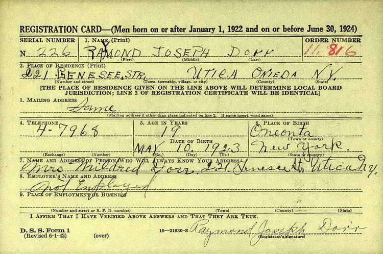 on 6 June 1942 and was inducted i8nto the Army at Binghamton, NY on 2
