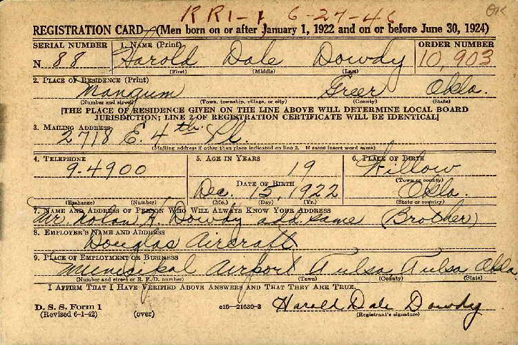 registered for the draft at age 19, ca. 1941. A college student