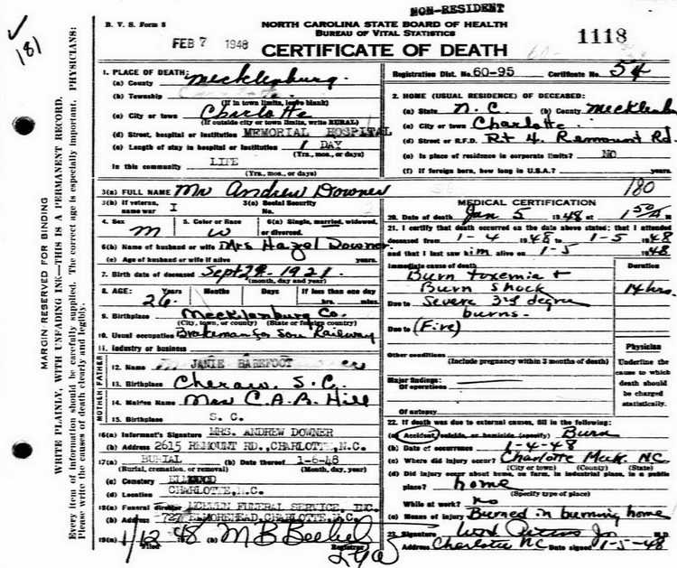 Downer a Southern Railway switchman and war veteran was fatally burned