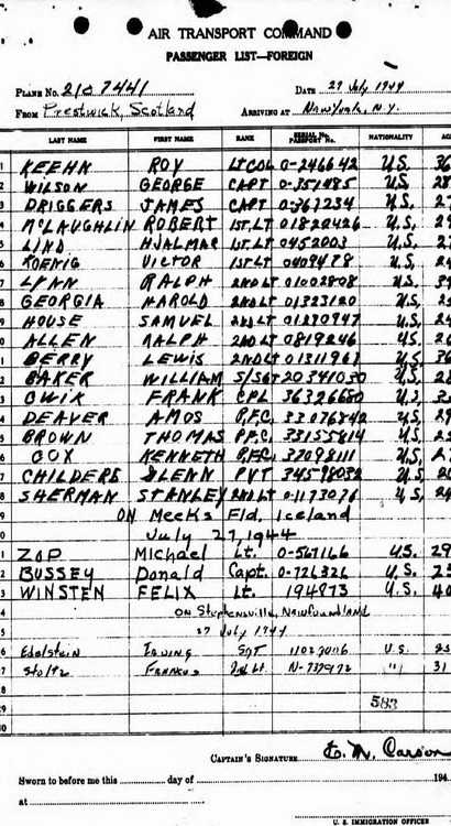 Prestwick, Scotland aboard a Air Transport Command chartered Trans World