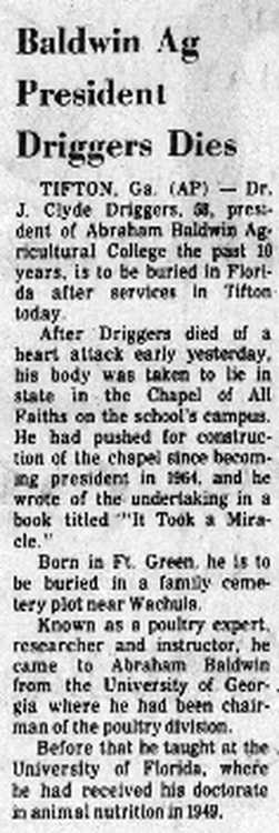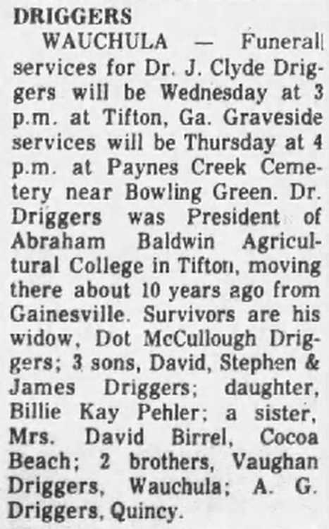 DRIGGERS WAUCHULA - Funeral! services for Dr. J. Clyde