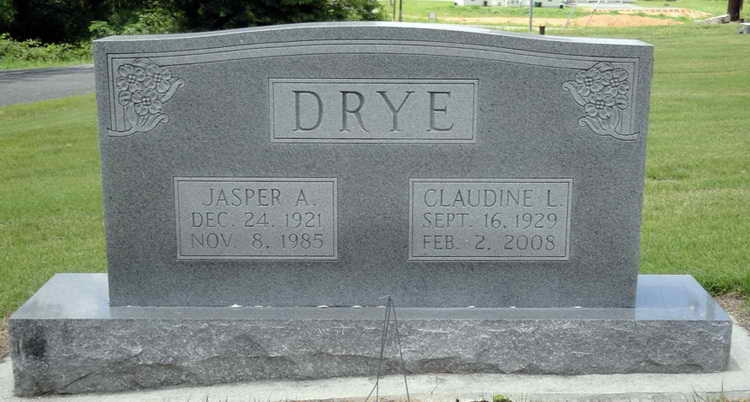 Grave markers for Jasper A. and Claudine L. Drye in the