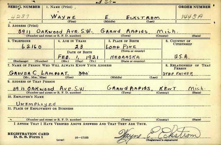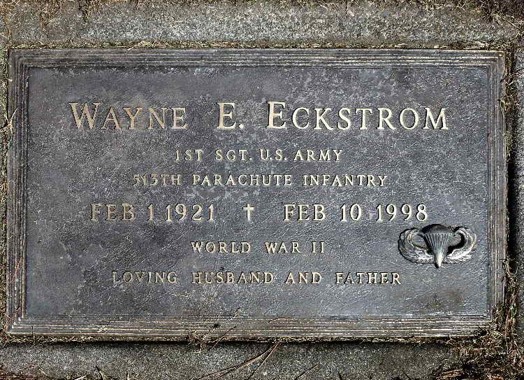 Grave marker for Wayne E. Eckstrom in Veterans Section XIV, Skylawn