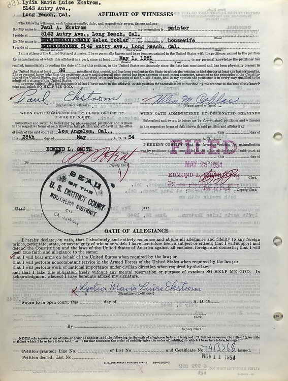 allegiance in Los Angeles, CA on 28 May 1954.