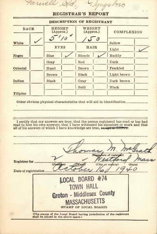 Westford, Massachusetts on 16 October 1940 and was inducted into the