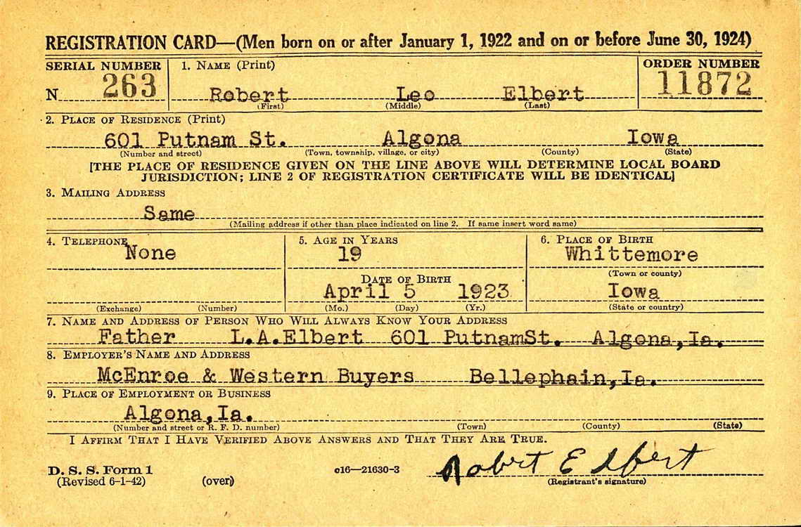 Pvt Elbert was awarded the Bronze Star Medal while a