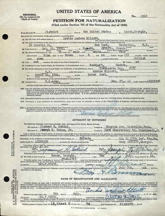 Wheeler, GA. On 7 July 1944, his petition for naturalization was