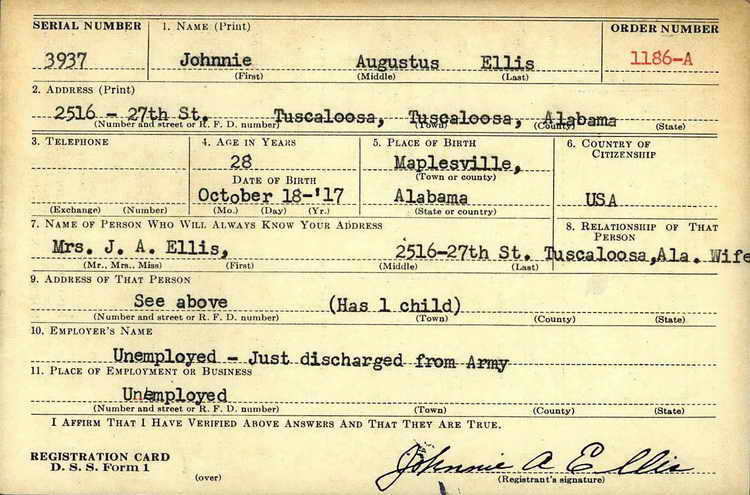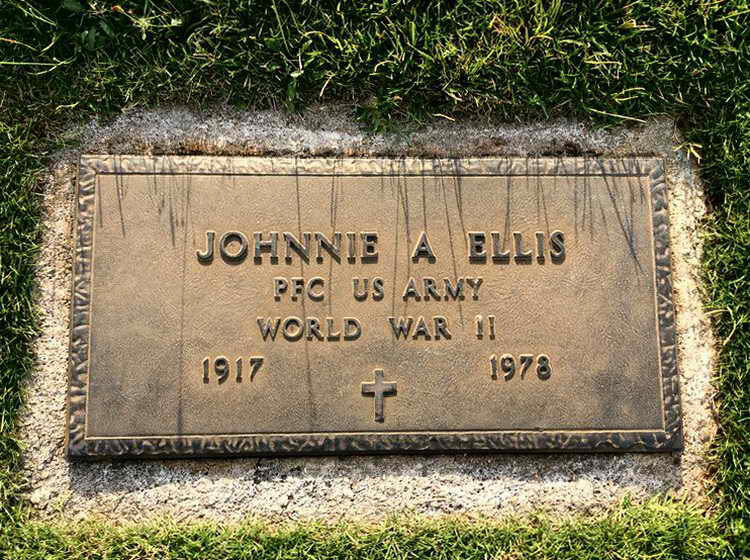 marker for Johnnie A. Ellis in Tuscaloosa Memorial Park, Tuscaloosa