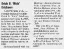 His wife Rita of Lakewood, four children, 10 grandchildren, and six great-grandchildren survive Rick. Condolences may be sent to Rita Erickson, 2671 S. Garland St., Lakewood, CO 80227.