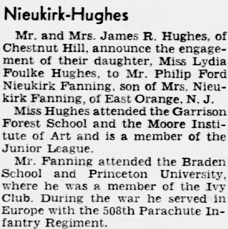 engagement of their daughter, Miss Lydia Foulke Hughes, to Mr. Philip Ford