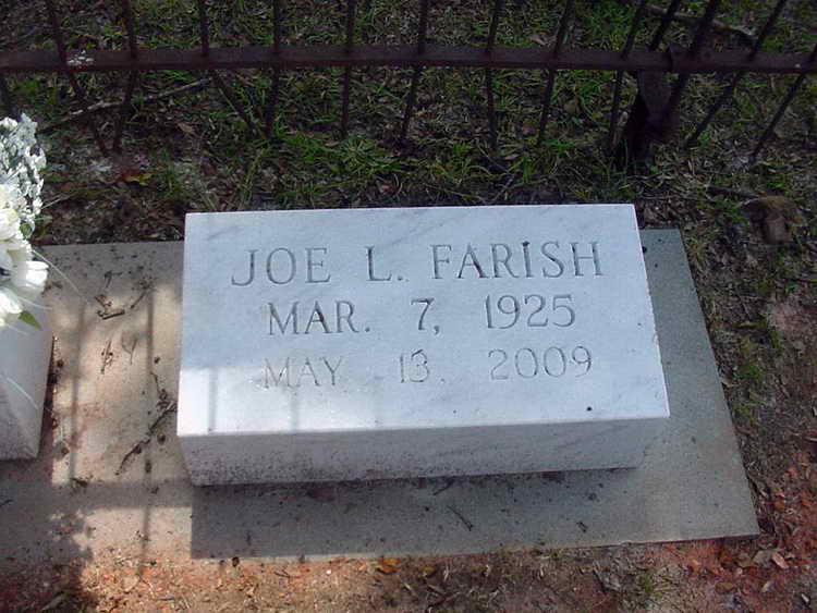 marker for Joe L. Farish in the Oakland Cemetery, Gaffney (Cherokee county), South Carolina.