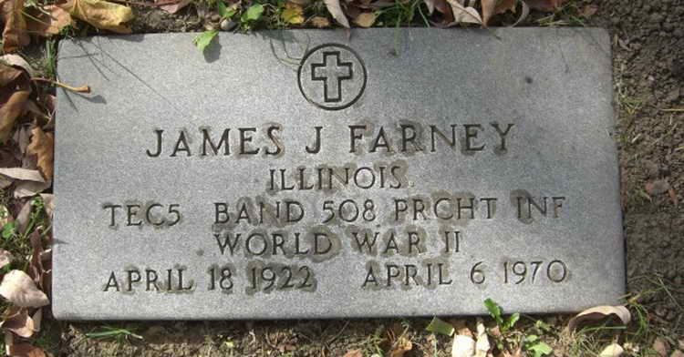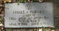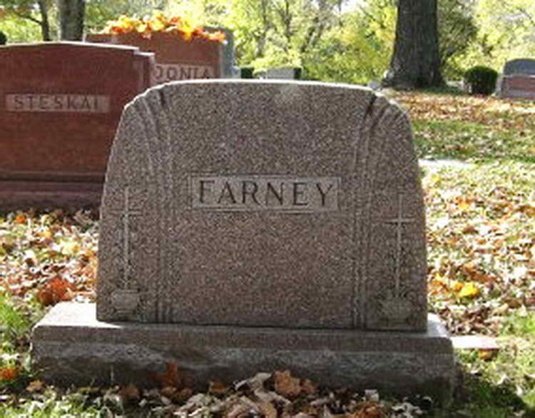 Grave markers for James J. Farney in the Calvary Cemetery,