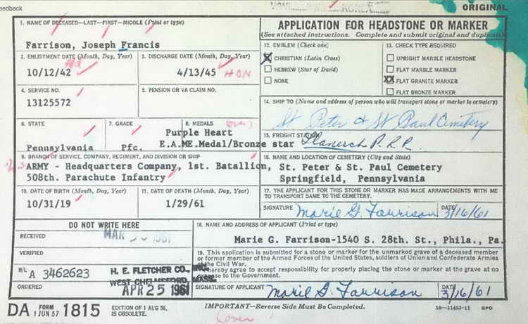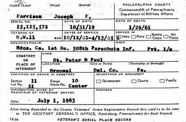 On 23 June 1944 Pfc Farrison was listed