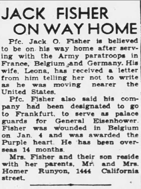 palace guards for General Eisenhower. Fisher was wounded in Belgium on