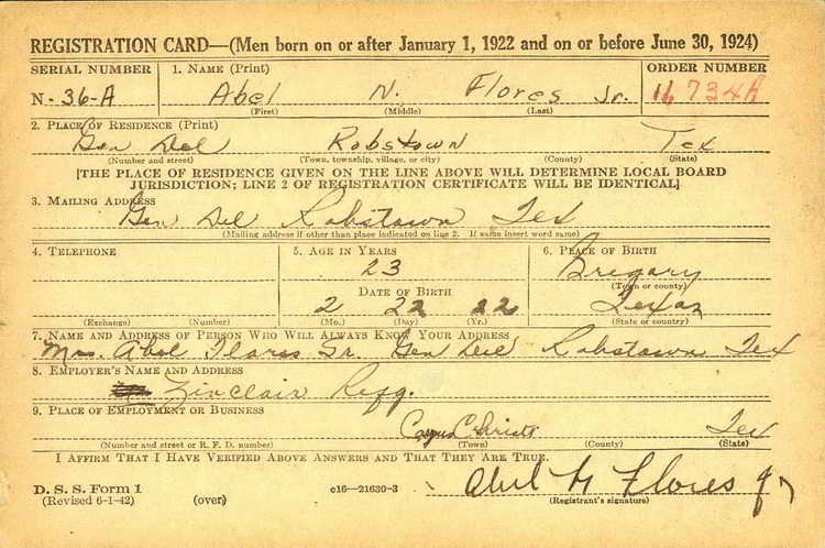 county), TX on 24 February 1923, the 4th child to his parents. Abel and