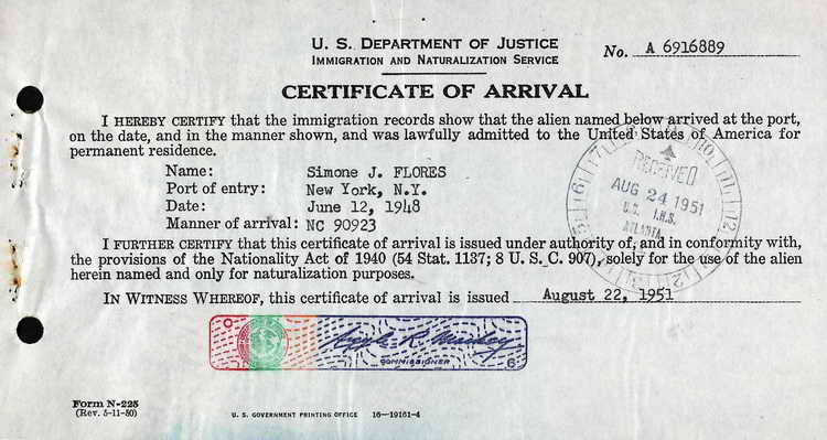 arrived in New York, NY aboard the SS Sea Porpoise on 26 May 1945.