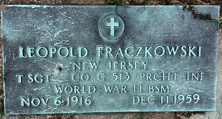 Grave marker for Leopold A. Fraczkowski in Section-2E, Row CP/ES,
