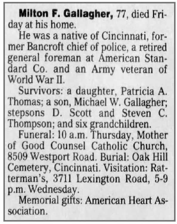 He was a native of Cincinnati, former Bancroft chief of police, a