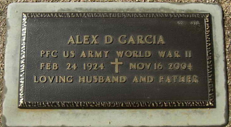 Grave marker for Alex D. Garcia in Section 52 Site 478 of the National